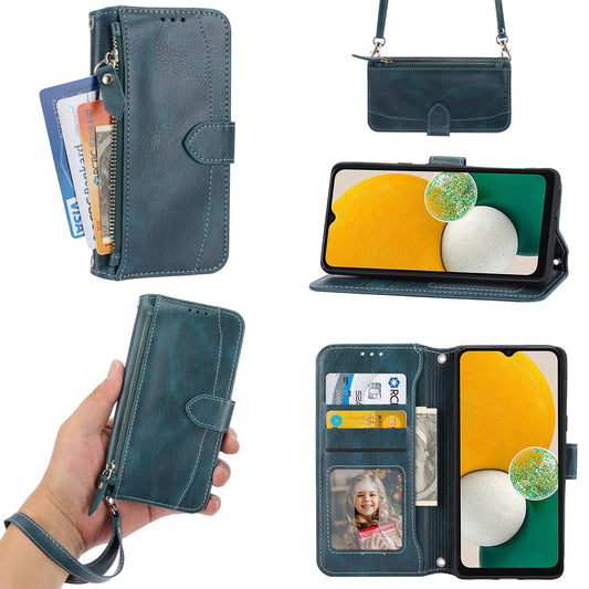 Soft PU Leather Wallet Phone Case with Card Holder, Zipper Pocket & Crossbody Strap - Ybdkallb Series