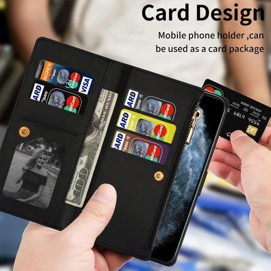 For iPhone 17 16 Pro Max Wallet Case with 9 Card Slots and Zipper Pocket, PU Leather Phone Cover - Dkxkld Series