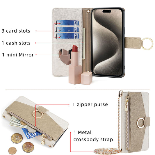 For iPhone 17 16 Pro Max Crossbody Wallet Case with Chain Lanyard Strap Mirror Bracket - Xkwjq Series