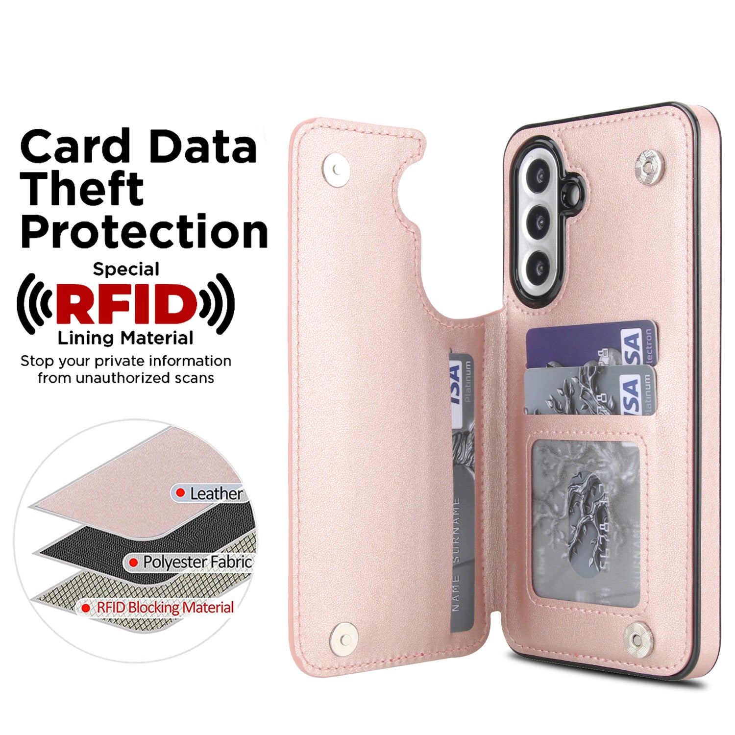 For Galaxy A56 A55 A54 A53 5G Case with RFID Blocking Card Holder Magnetic Clasp Flip Cover - Xxfsk Series
